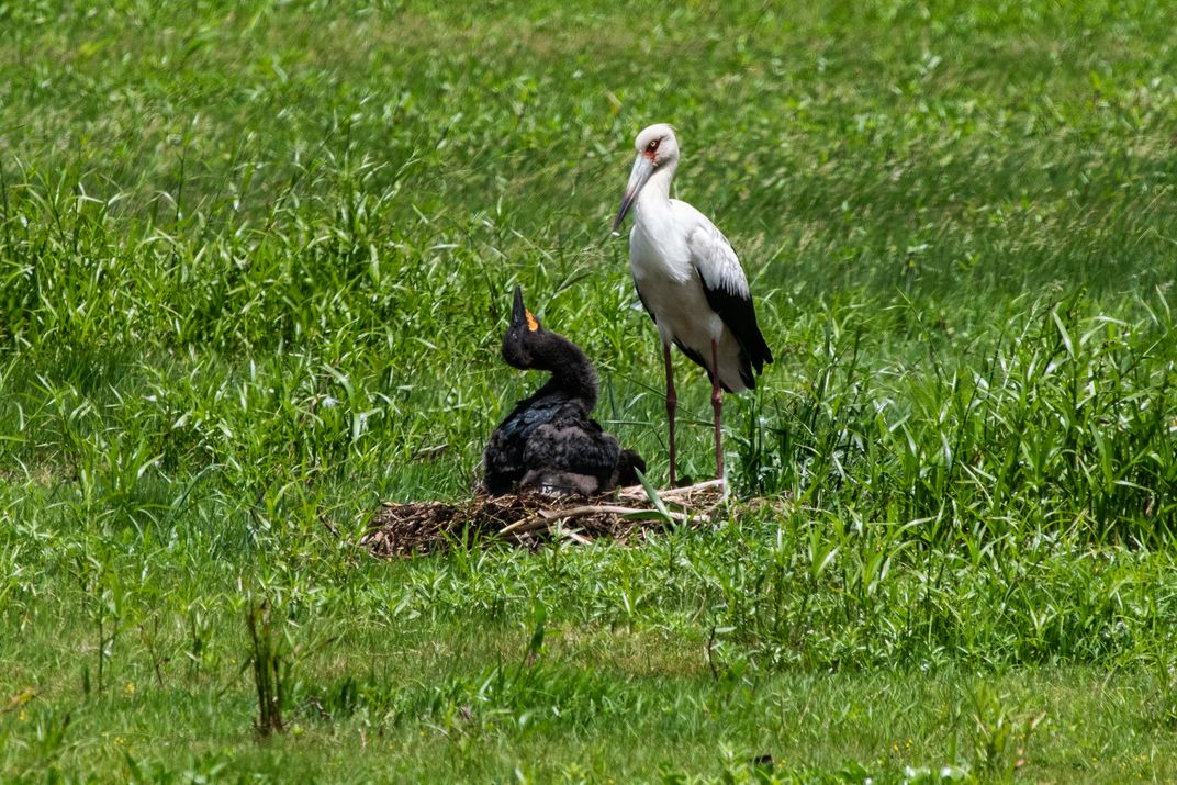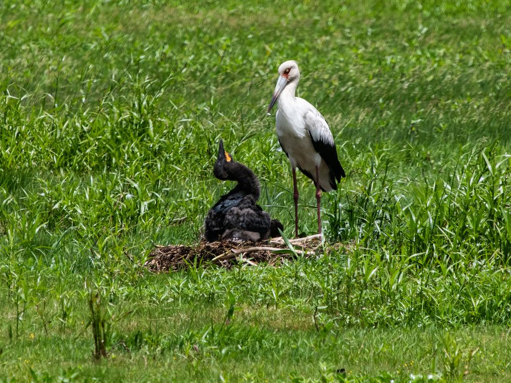 The wetlands in Rio Grande (Southern Brazil) are a paradise for birds. Several species breed during the spring, but it is not common to find nests of the maguari stork. The young black stork was looking up at the adult, when I managed to capture this picture. They could be seen from the side of the road and they were not bothered by cars stopping by the side of this busy road.