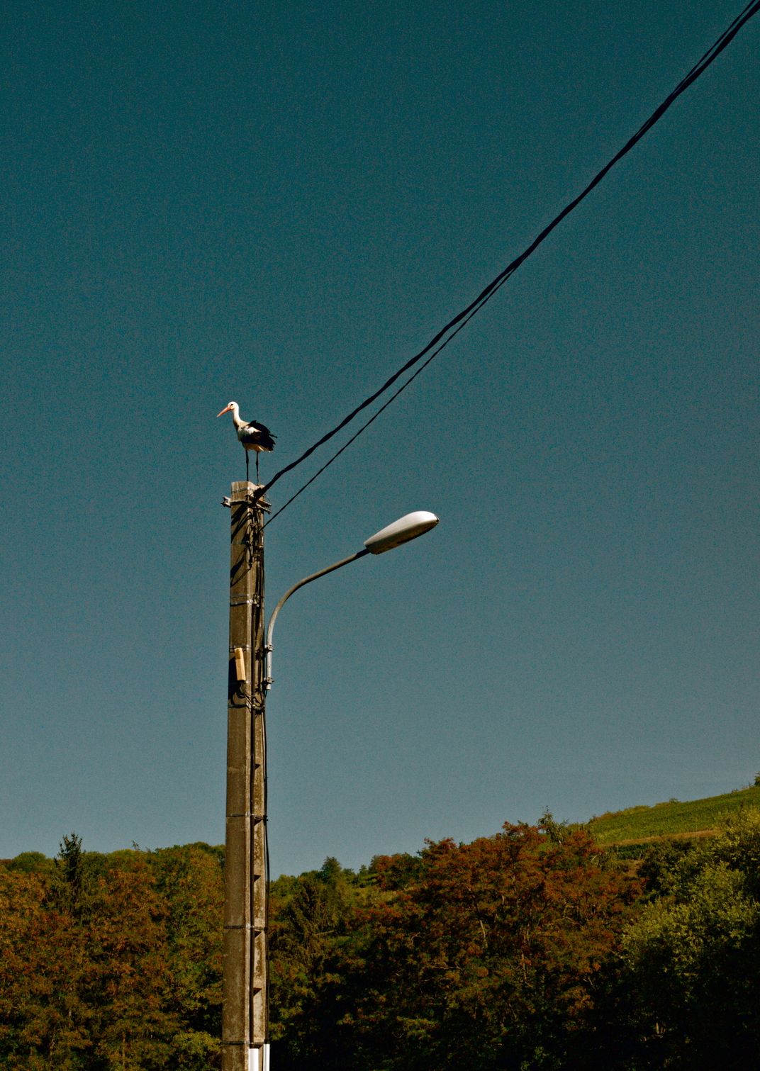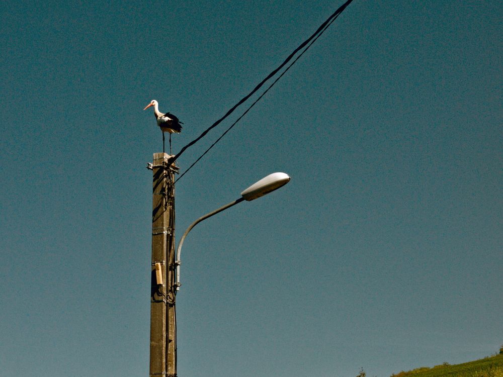 This stork was resting on a street lamp in an Alsatian village in front of the Scharrach hill. It is a protected natural area. Storks are a regional symbol. I think this photo is representative of the villages surrounding the Scharrach hill.