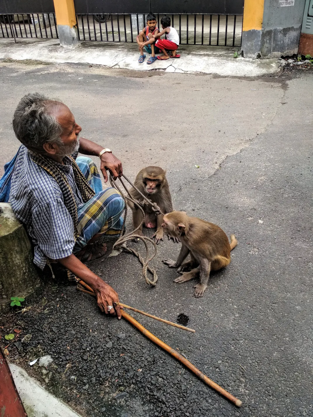 Master trained their monkey to show monkey game in street in various occasion. monkey plays with various instrument. people and children enjoying funny monkey game. The monkey trainer called a madari usually has a couple of monkeys, a male and a female to perform tricks. After the show the monkeys beg for money. A few people give money, some give a bit of food to the Monkeys. Monkeys can sometimes be seen to performing in the lanes and by lanes where life is less hurried.