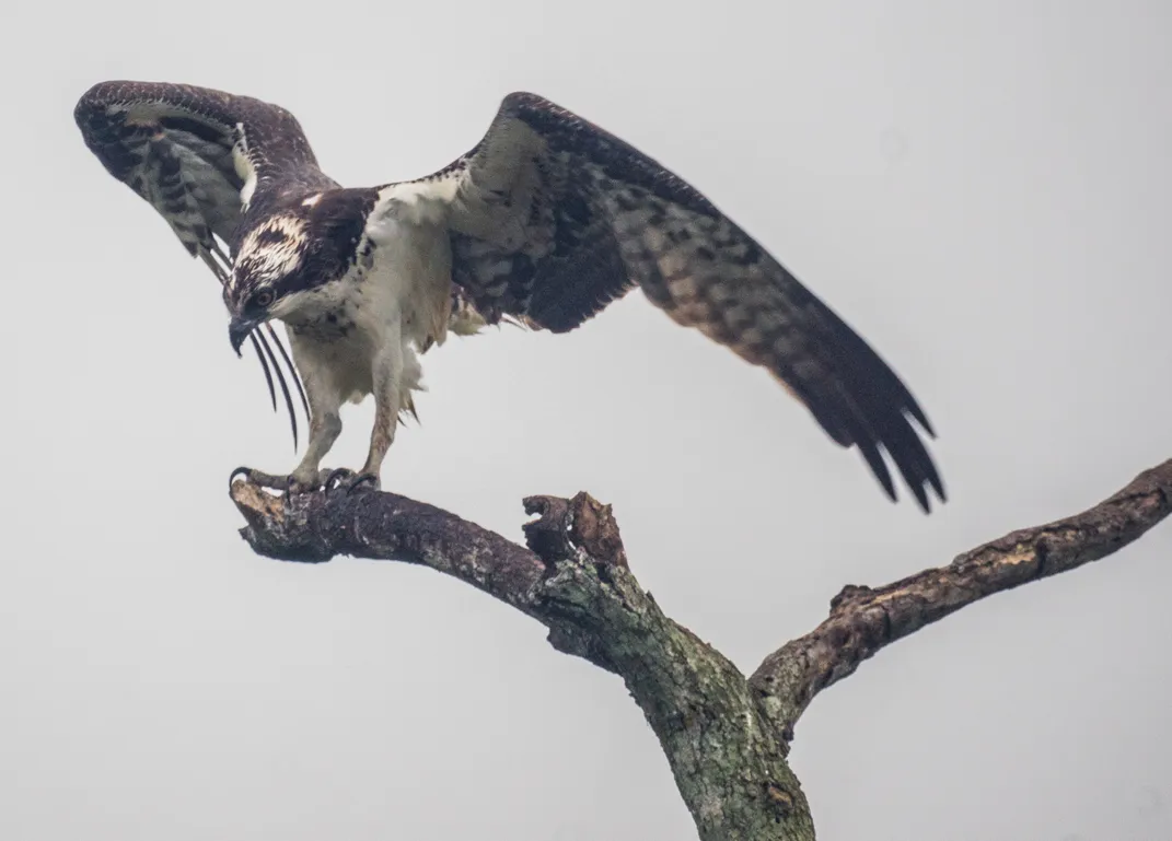 Osprey stretching it wings after a meal