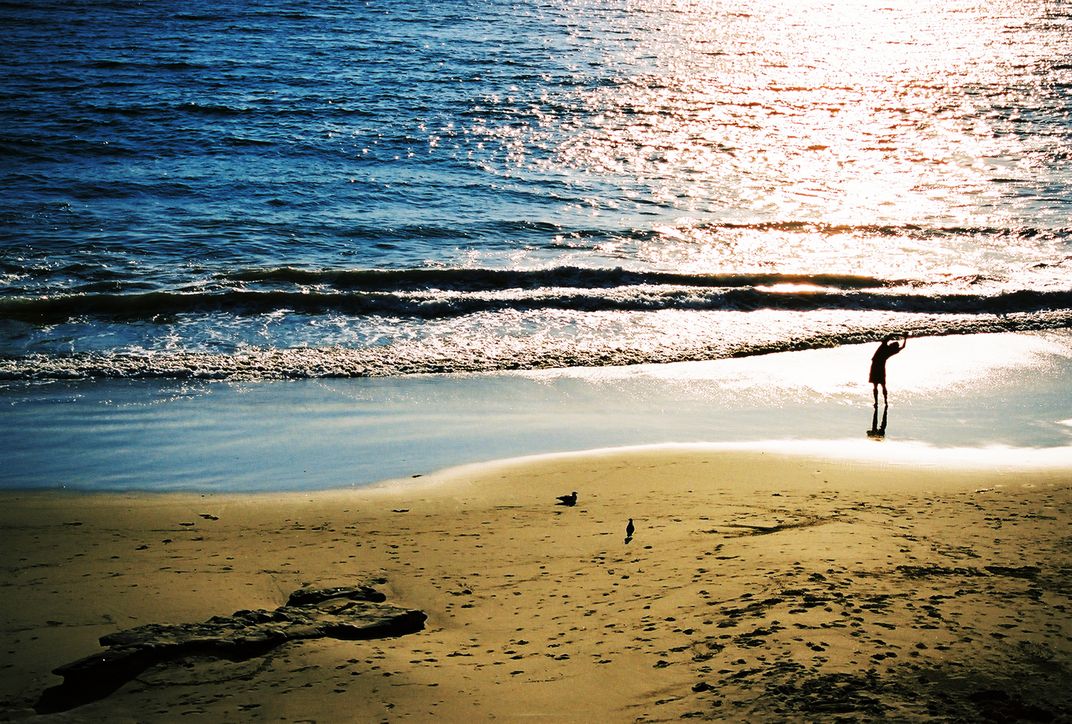 Stretching on the beach