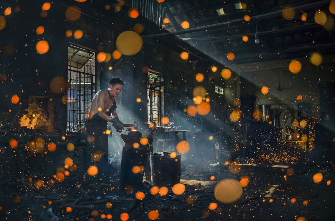 The work was shot in Guangdong, China, recording the scene of traditional iron forging.