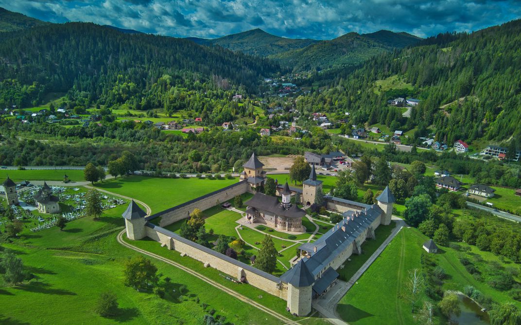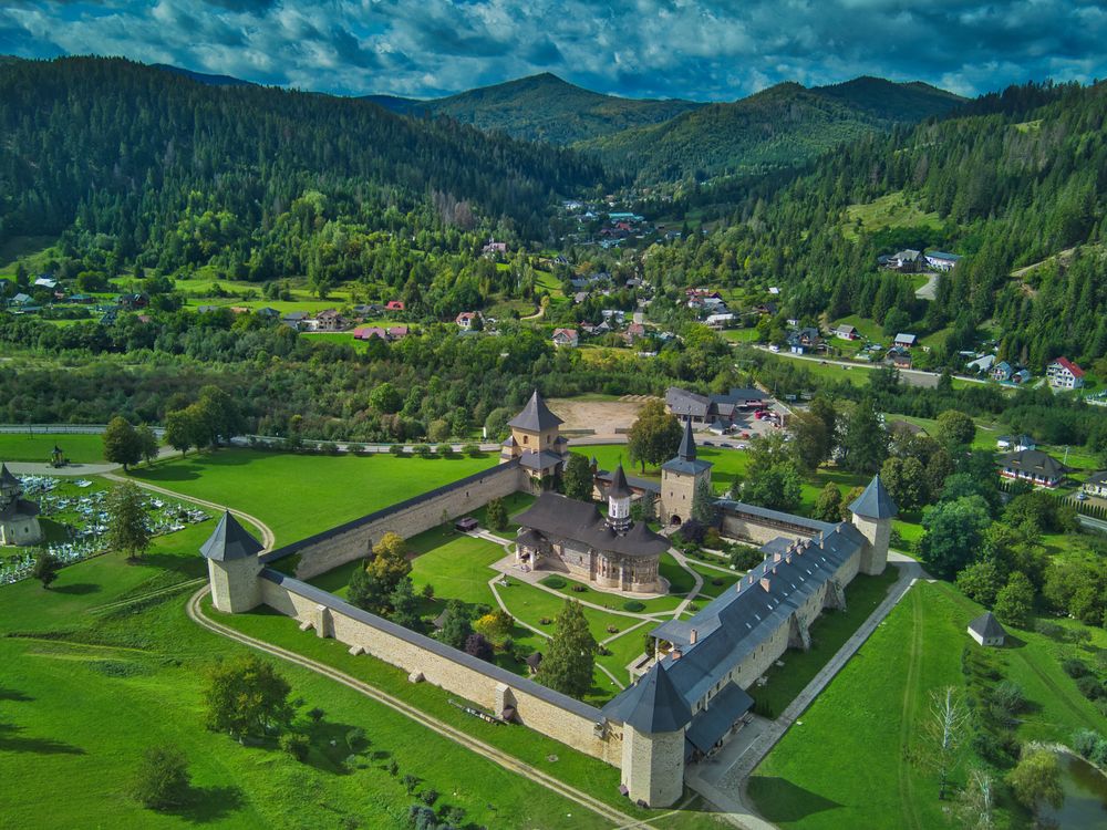 Dominating the landscape of Sucevița village in Suceava County, the Sucevița Monastery (Mănăstirea Suceviţa) is the largest and most complete of the Painted Churches of Moldavia. Built in 1585, the Orthodox convent is encircled by imposing, high defensive walls and corner towers, giving it the appearance of a medieval fortress. It is a UNESCO World Heritage Site and features exquisite exterior frescoes, painted around 1601, with a distinctive emerald green as the dominant color.