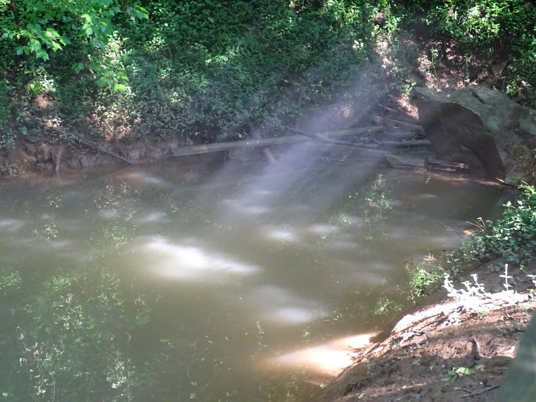 During an early morning hike at Lost River Cave in Bowling Green, KY, my daughter noticed the rays from the sun rising shining through the trees onto a small, natural pond.