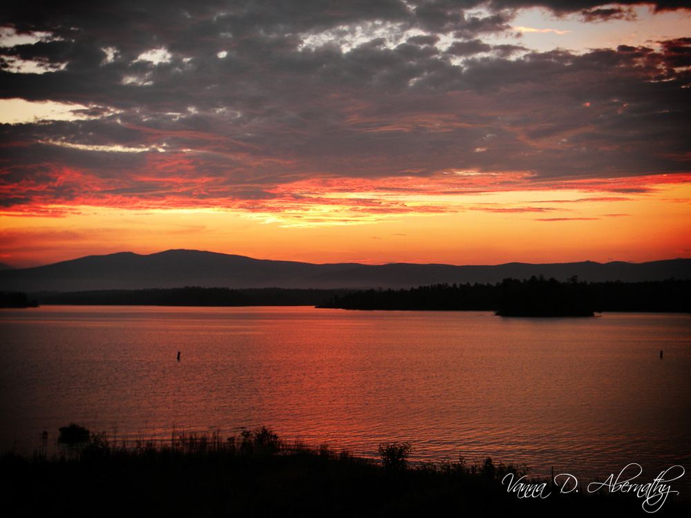Sun setting on the longest day of the year in 2010 over Lake James.