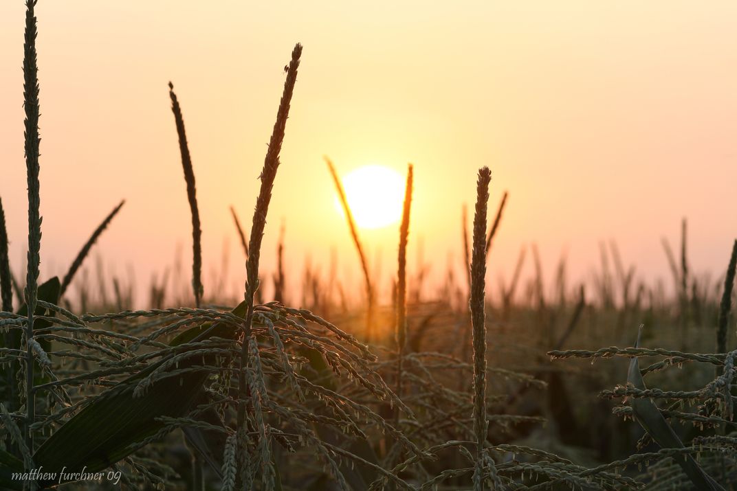 Sun setting over a corn field in southern MN.