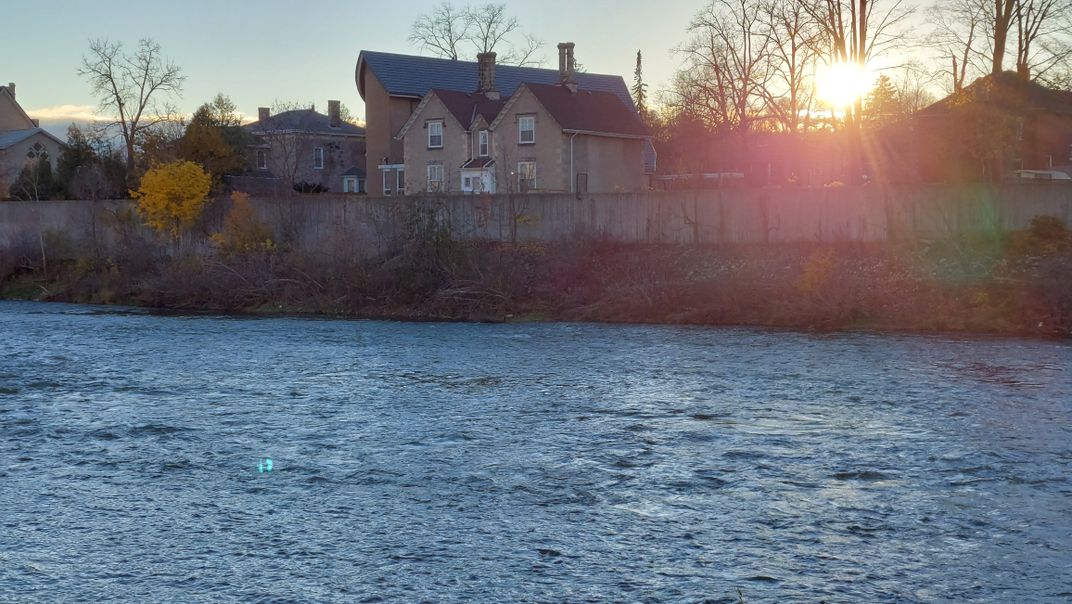 On a Sunday walk, I was walking near the Grand River in Cambridge Ontario. The sun was beaming into the river. It caught my attention.