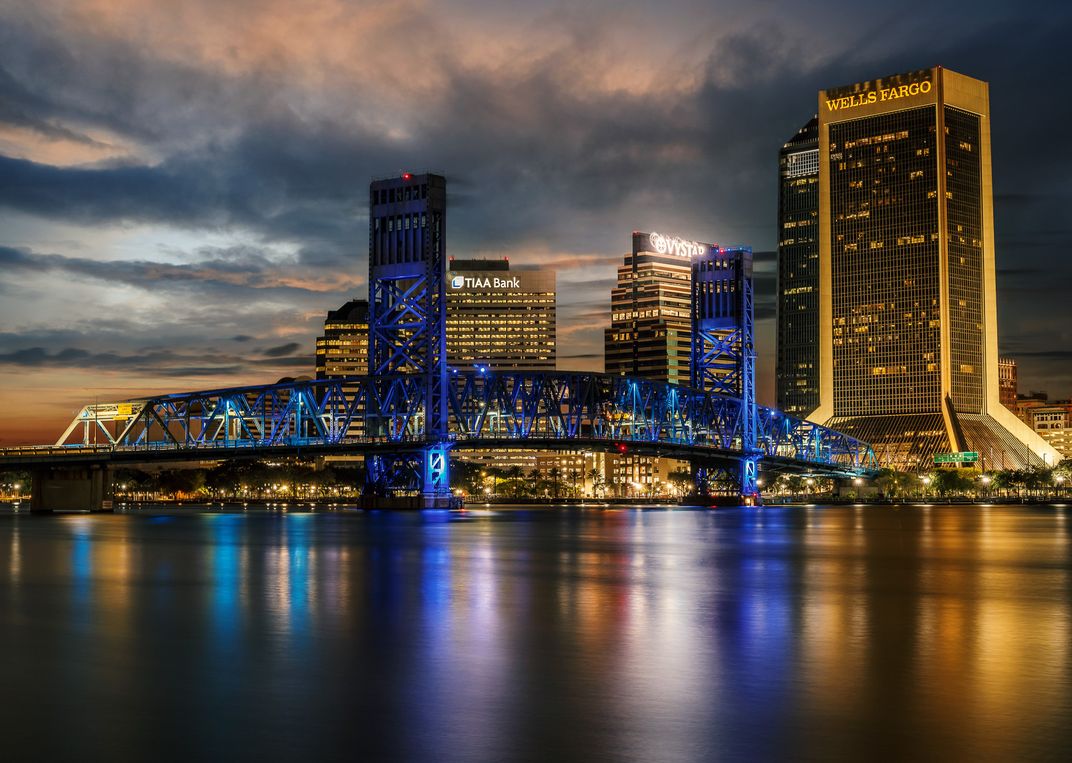Captured along the Jacksonville riverfront, this photo highlights the stunning skyline and the timeless charm of a city rich in history and mystery. The shimmering lights paint the water with a radiant glow, reflecting Jacksonville’s beauty at night.
