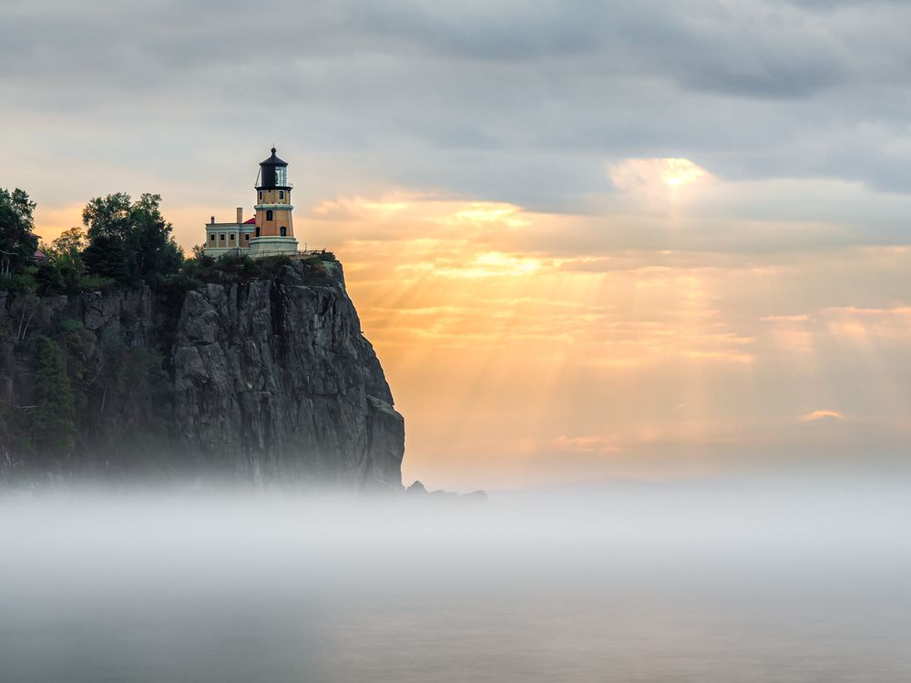 Sunrays, Fog, and a Lighthouse