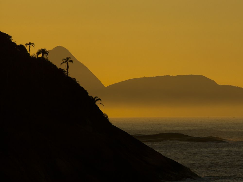 Sunrise in a bay surrounded by rock mountains