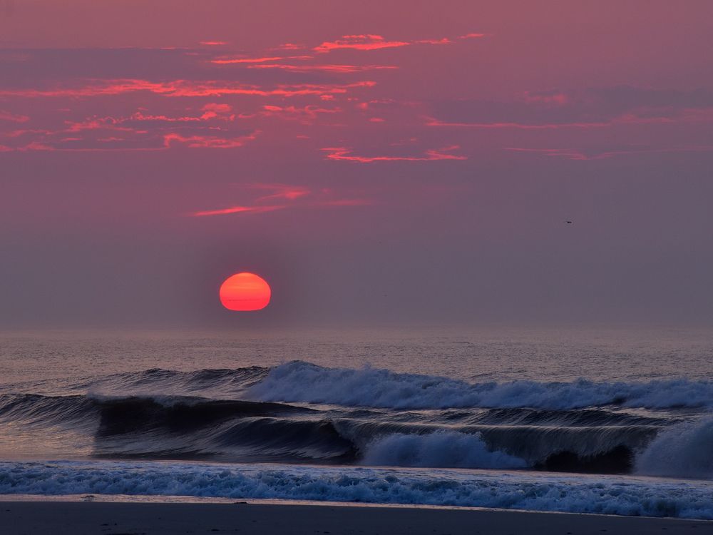 There are always early risers to catch sunrises over the Atlantic Ocean. Sunrises require clouds to demontratethe rnge of orange/pink colorations.