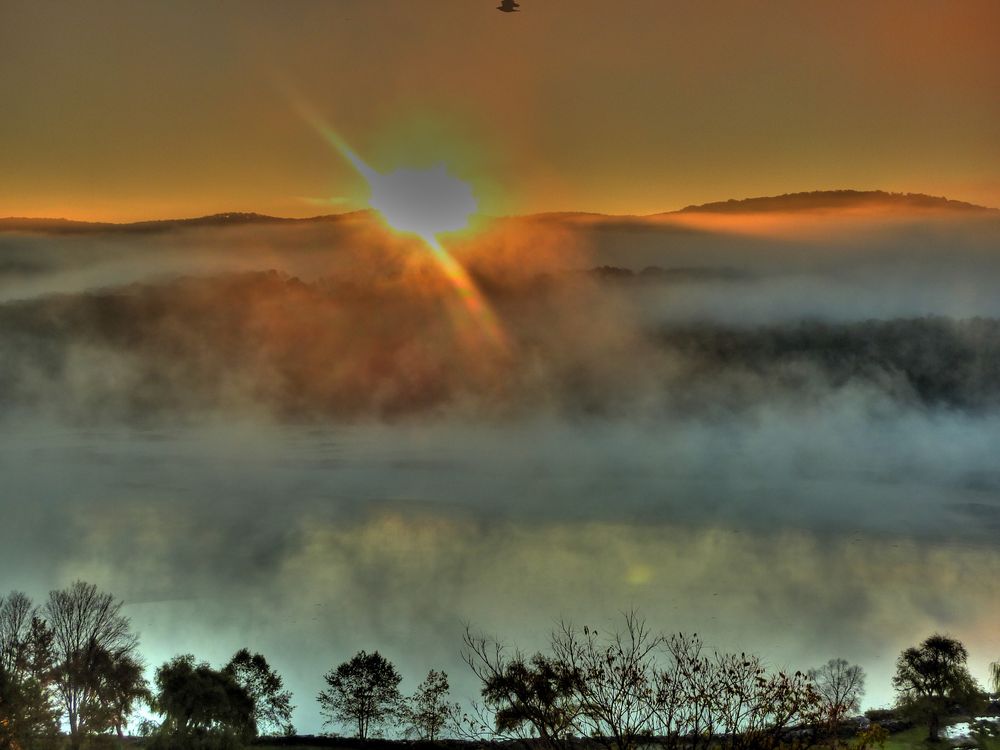 Sunrise over the Hudson River. HDR composite.