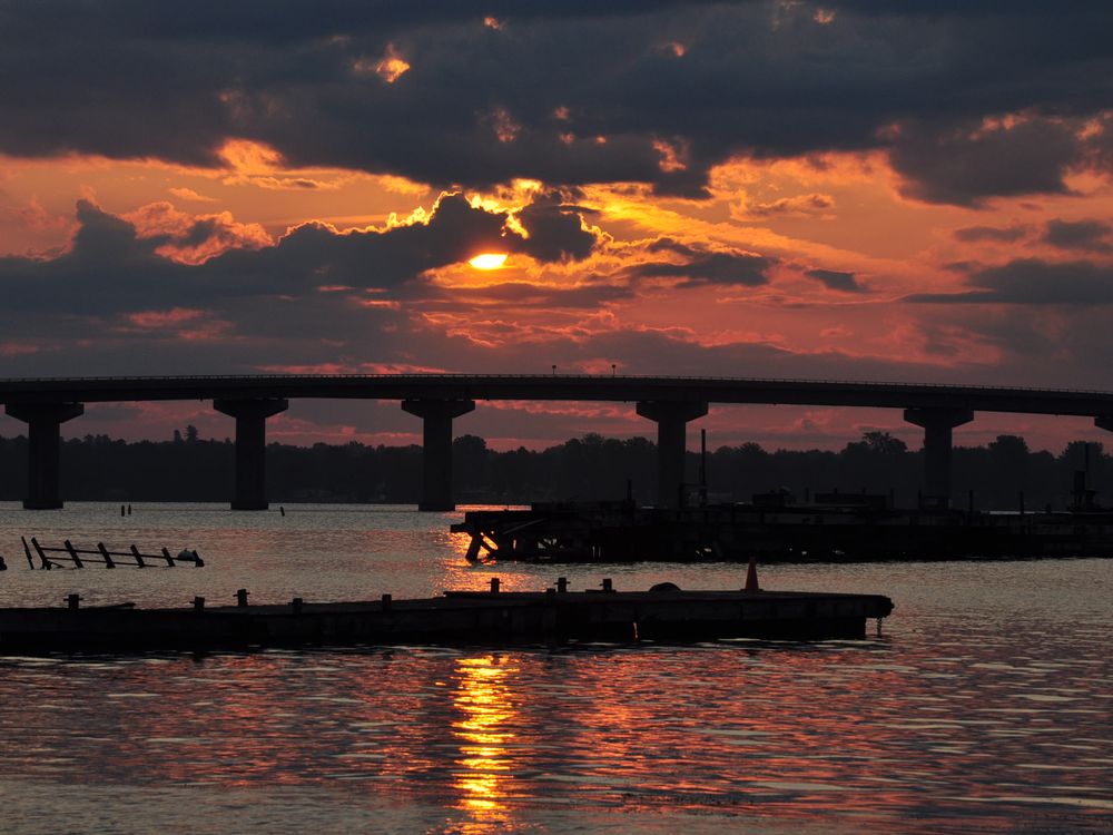 Waking up in the middle of the night. Crossing the border to go to boat launch in Rouses Point NY with my kayak and camera. Then, wait for the sunrise, hoping for some nice surprise. The veterans bridge between Rouses Point and Alburgh gives a nice perspective.