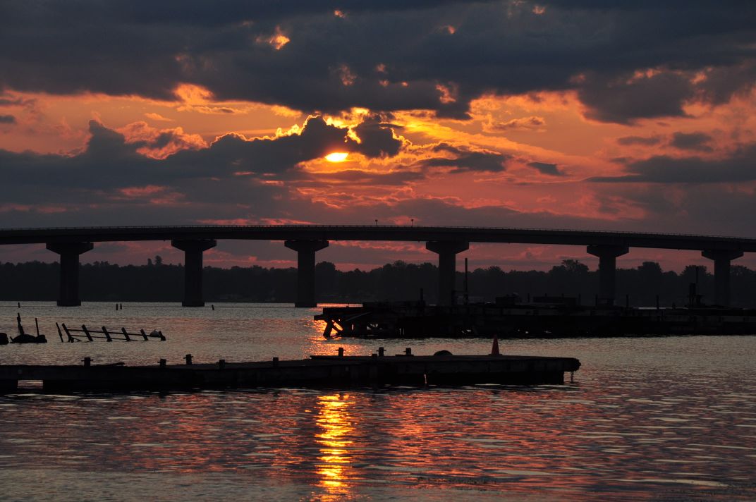 Sunrise on Korean War Veterans Memorial Bridge in Rouses Point NY