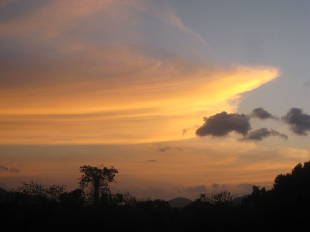This is a sunset in Sri Lanka. I thought it looked like a painting. The formation of the clouds on the top left side looks like a paint brush stroke across the sky. It looked pretty amazing.