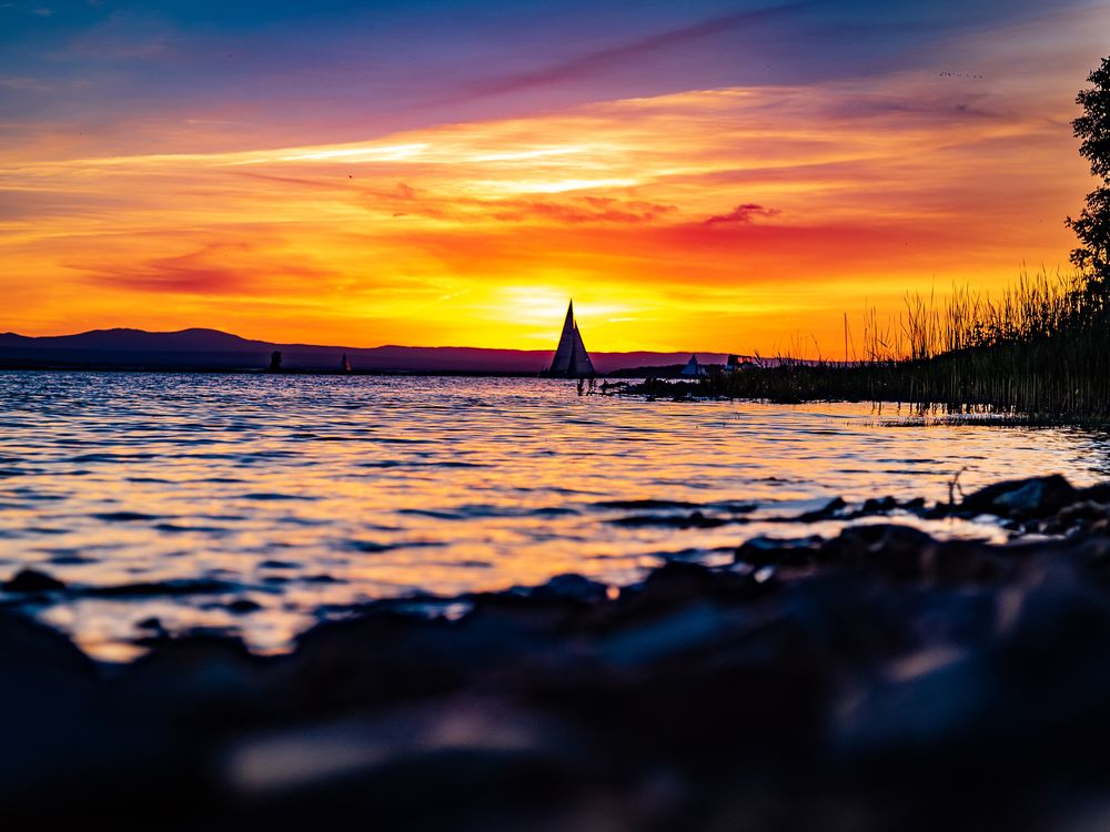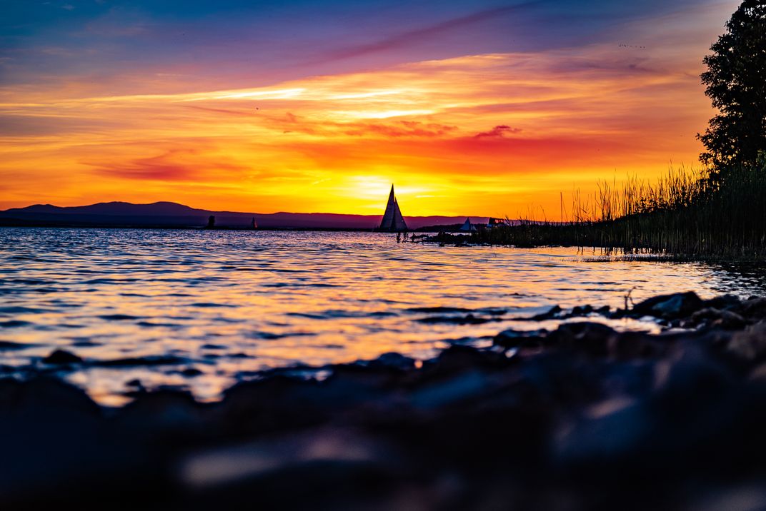 Along the shore of Lake Champlain in Burlington, VT, the sun sets on a beautiful summer day.