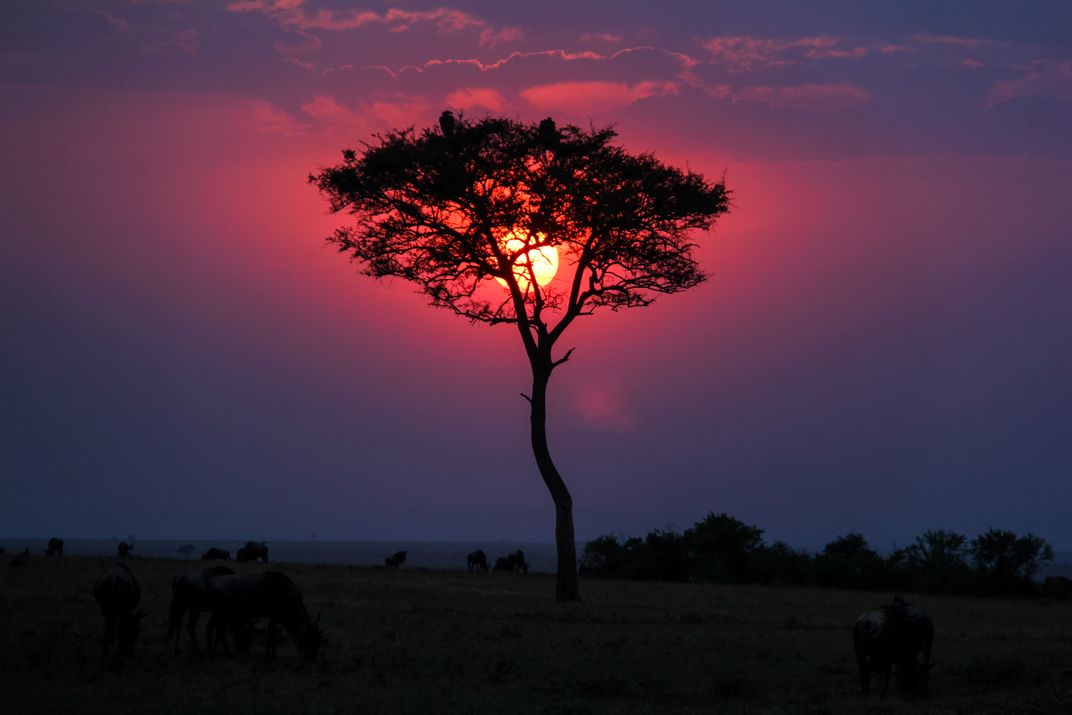 Sunset at MasaiMara is absolutely serene. On this particular day, as the sun was setting we witnessed the animals wrapping up their grazing and heading to their safe space in their herds.