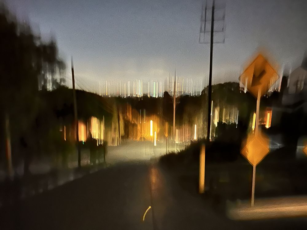 No drinking and driving these days! On occasion, I have enjoyed myself too much and walked home in a landscape much like this. However, I was soberly strolling in my neighborhood here, moving my camera around in the low lighting - creating images that were surreal but familiar when the celebration supersedes moderation.