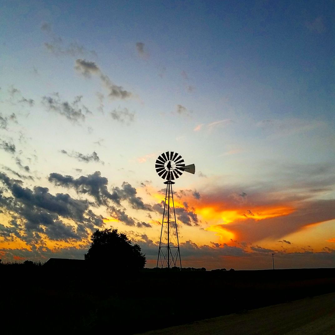 I was taking pictures with my friend, when we both noticed a windmill sitting against a beautiful sunset. I crouched down and captured this, later cropping it to sit in the center.