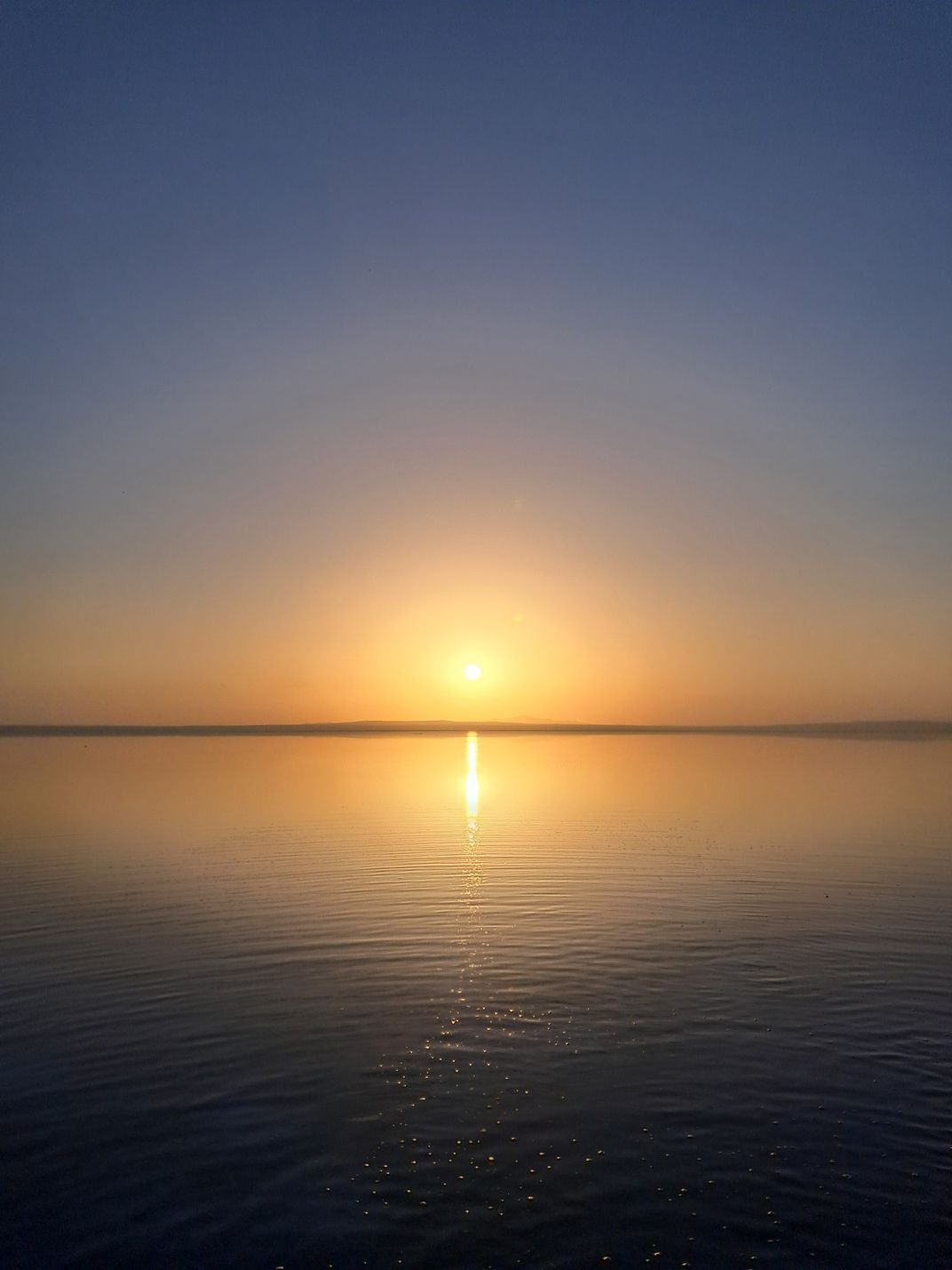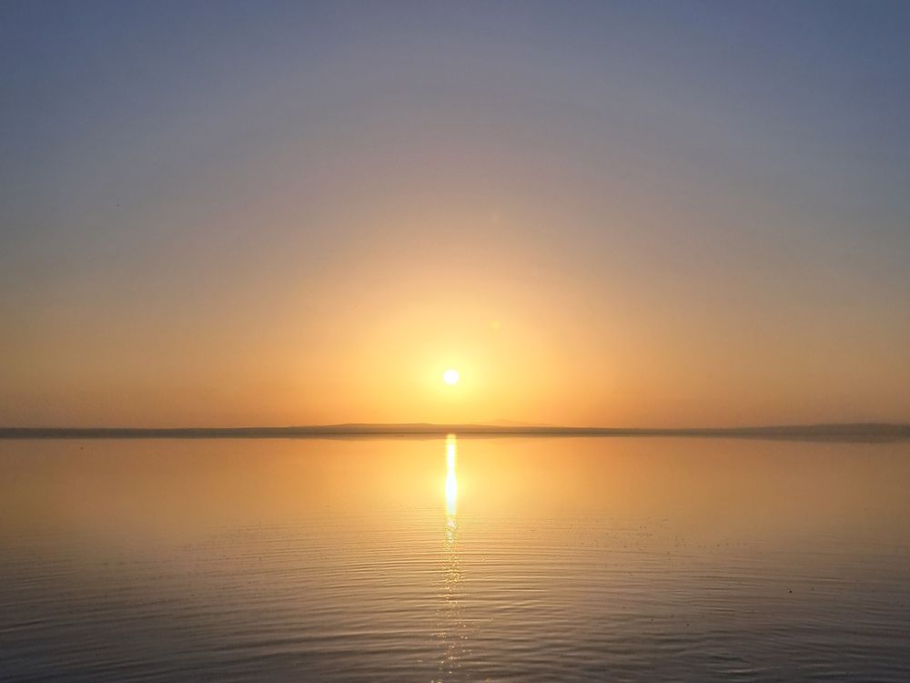 This photograph was taken at sunset on the shores of Lake Tuz (Fuz Gölü). As the sun slowly descended toward the horizon, its warm golden light spread across the perfectly still water, creating a shimmering path that felt almost unreal. In that quiet moment, the lake became a mirror — reflecting not only the sky but also a sense of calm and stillness within me. The glowing trail of light on the water felt like a bridge between the day and the night, a reminder of how simple moments in nature can touch us deeply.