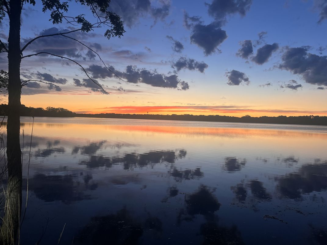 A photo of a sunset during fair season. The sun happened to be going down just as we walked by.