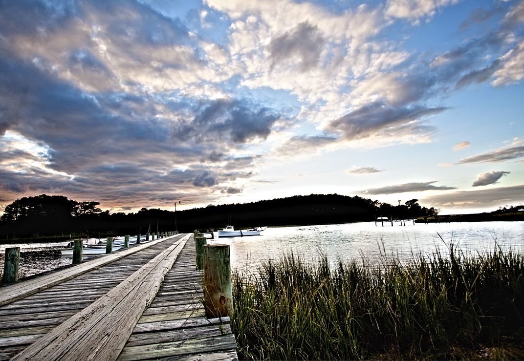 Sunset over one of the local Chesapeake Bay waterways on the Eastern Shore of Virginia. Many locals earn their sole income by working the surrounding waters and docking up to small inlets such as this one.