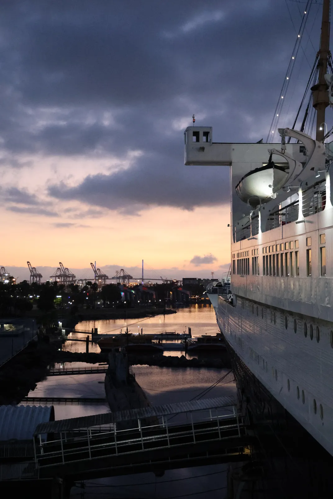 If you haven't been to the Queen Mary yet, I highly recommend it! She is a stunning ship especially at sunset. After enjoying an afternoon of walking through history, we walked off the ship around sunset. The sunset was beautiful that day. and it just felt like a perfect moment.