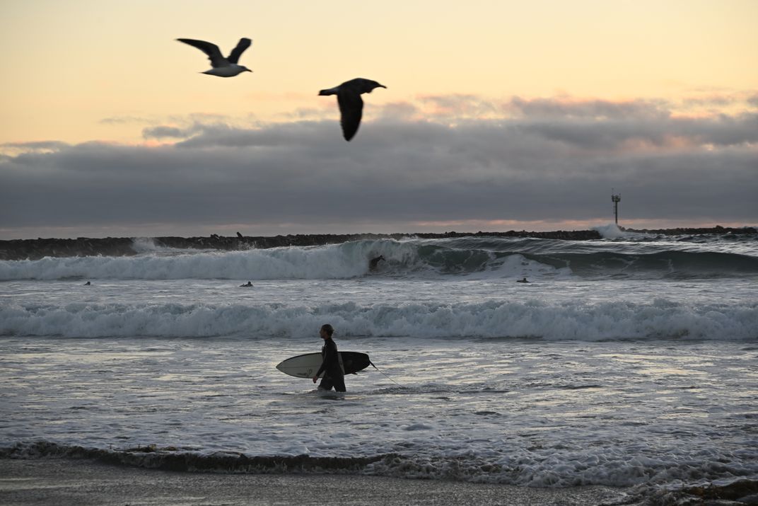 Surf Seagulls Sunset