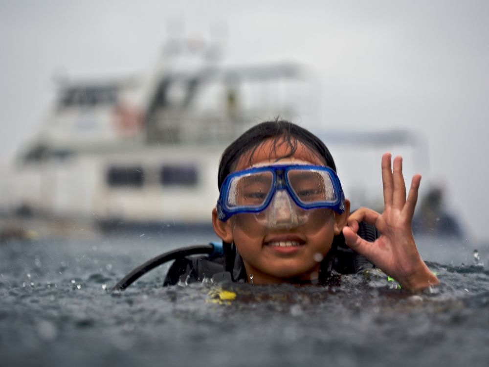 Surfacing after a dive in the rain.