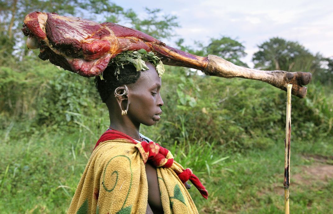 Surma girl carrying meat, Omo River Valley, Ethiopia
