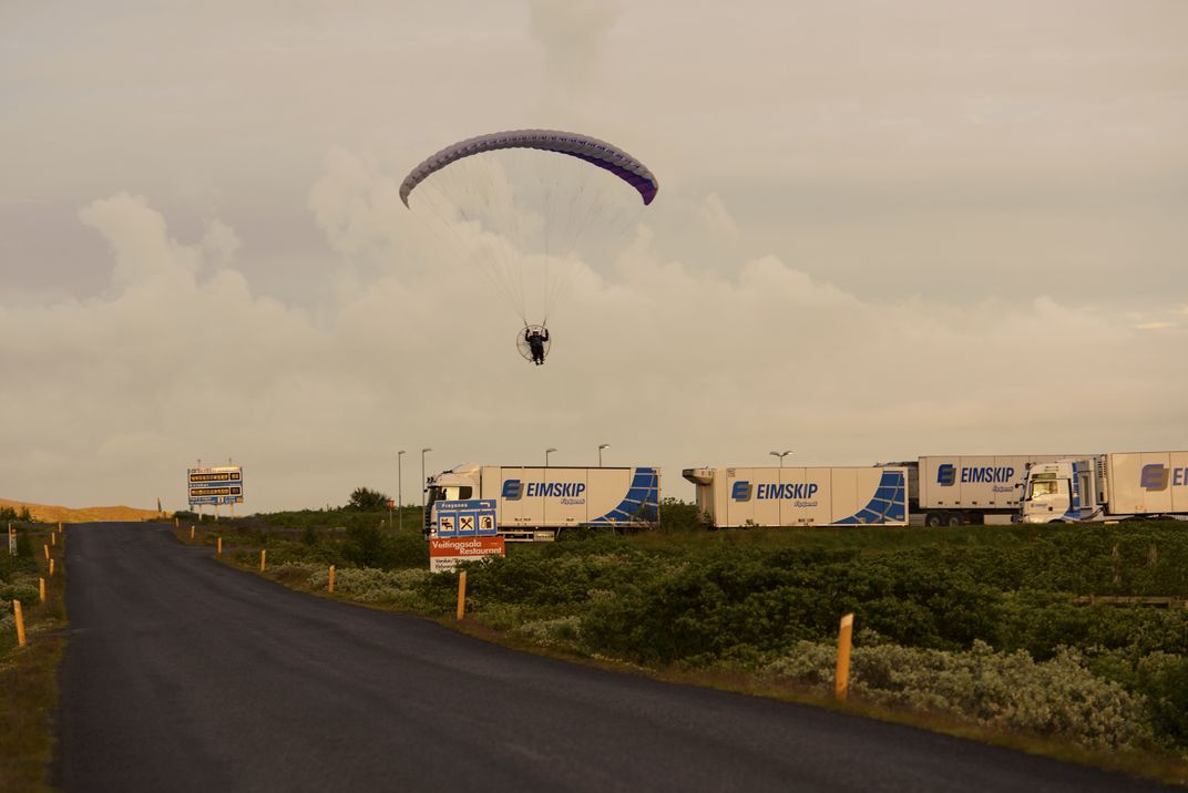 As I was hiking around Southern Iceland, a motor glider appeared out of nowhere - it felt like a scene of a movie.
