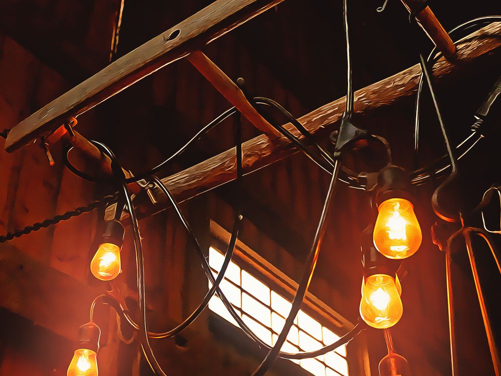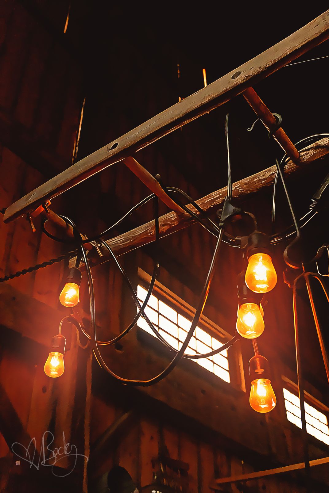 Warm bulbs hang from an old wooden ladder inside Simply Eclectic’s barn, where antiques and stories live. The light catches on every beam and treasure, turning the whole space into a quiet glow of memory and magic.