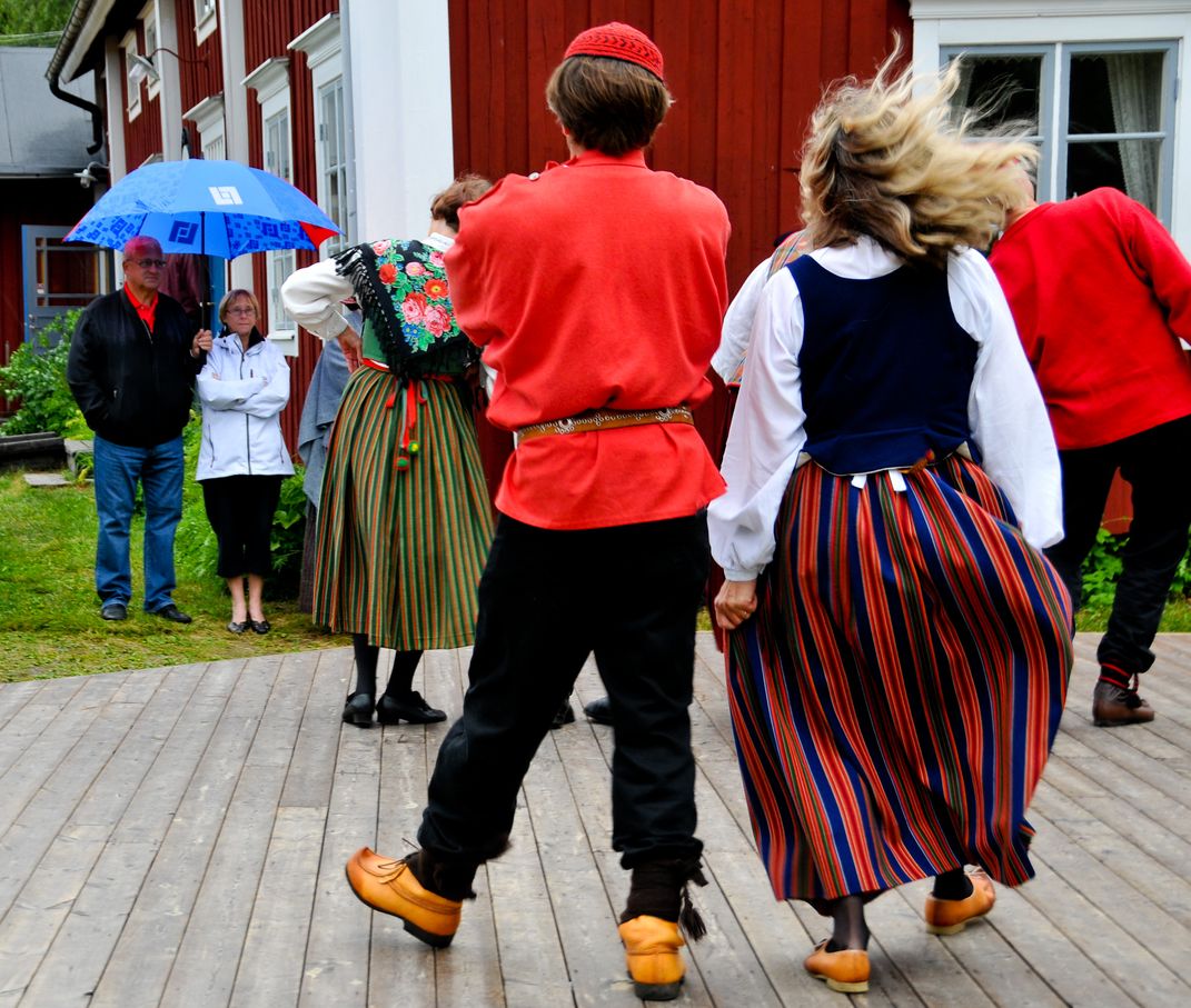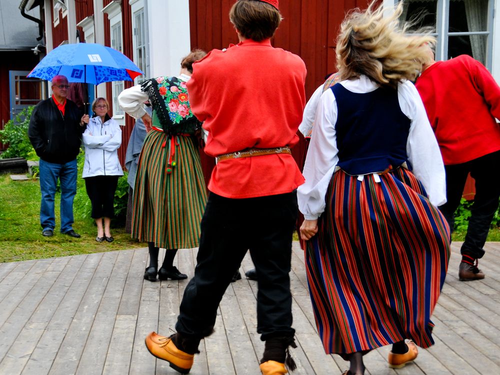 Swedish folk dancers entertaining a few onlookers in historic Gammelstad.