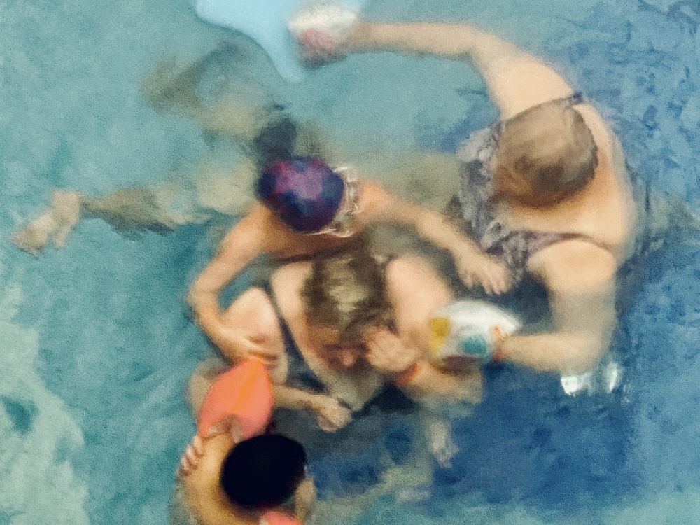 This photo was made through the glass roof of the pool. Two grandmothers were bathing with their grandchildren. It reminded me of the Claude Monet’s pastels with ballerinas.