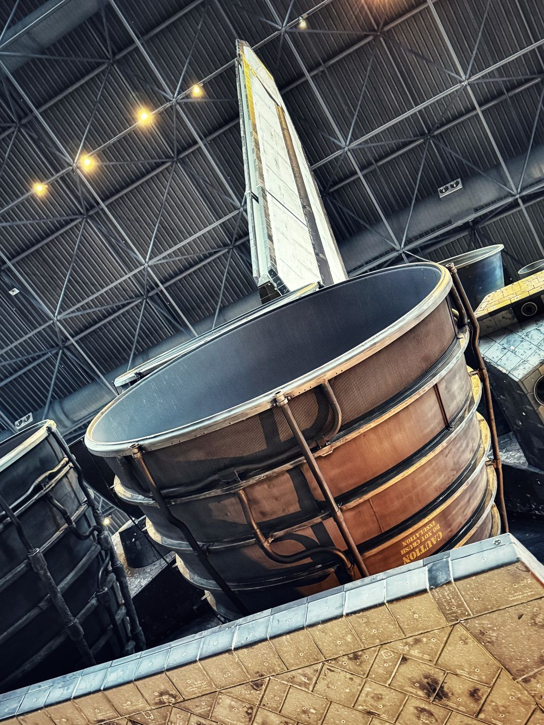 Underneath the thrusters and rudder at the end of Space Shuttle Discovery in the Smithsonian's Udvar-Hazy Center. 12/24/24, Chantilly, VA
