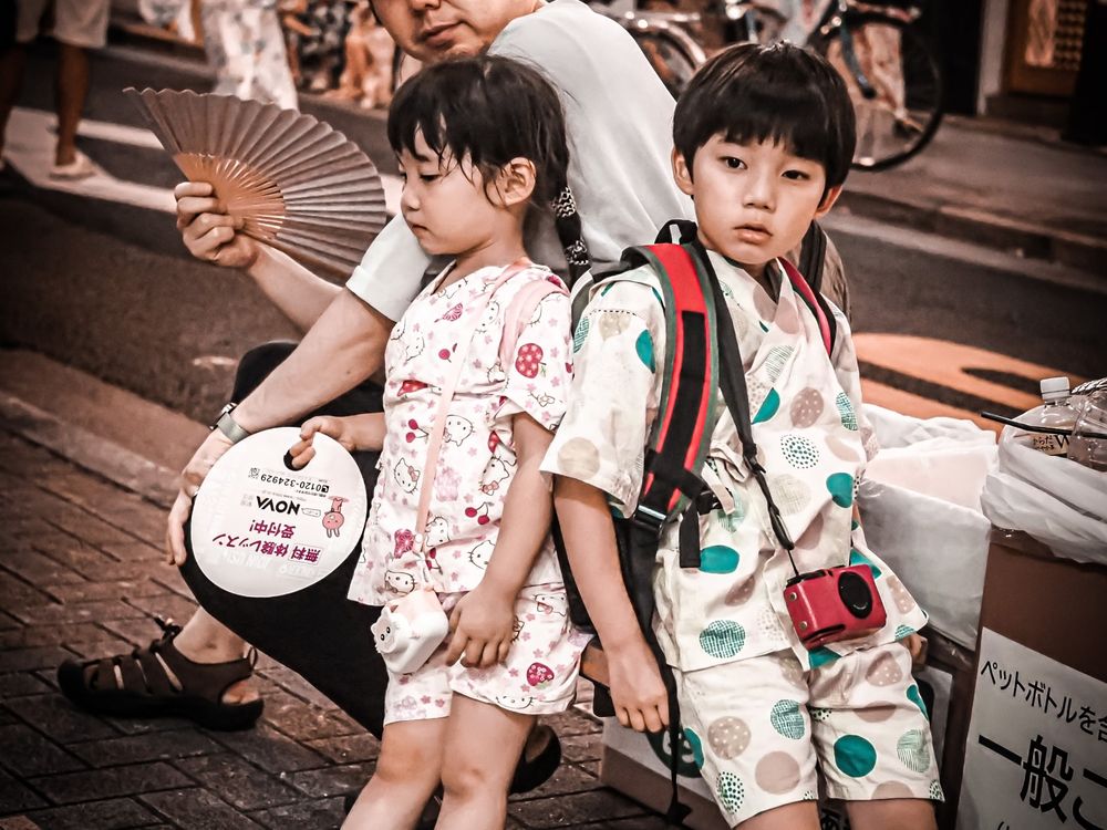 A family take a well deserved rest during a summer festival in Tokyo