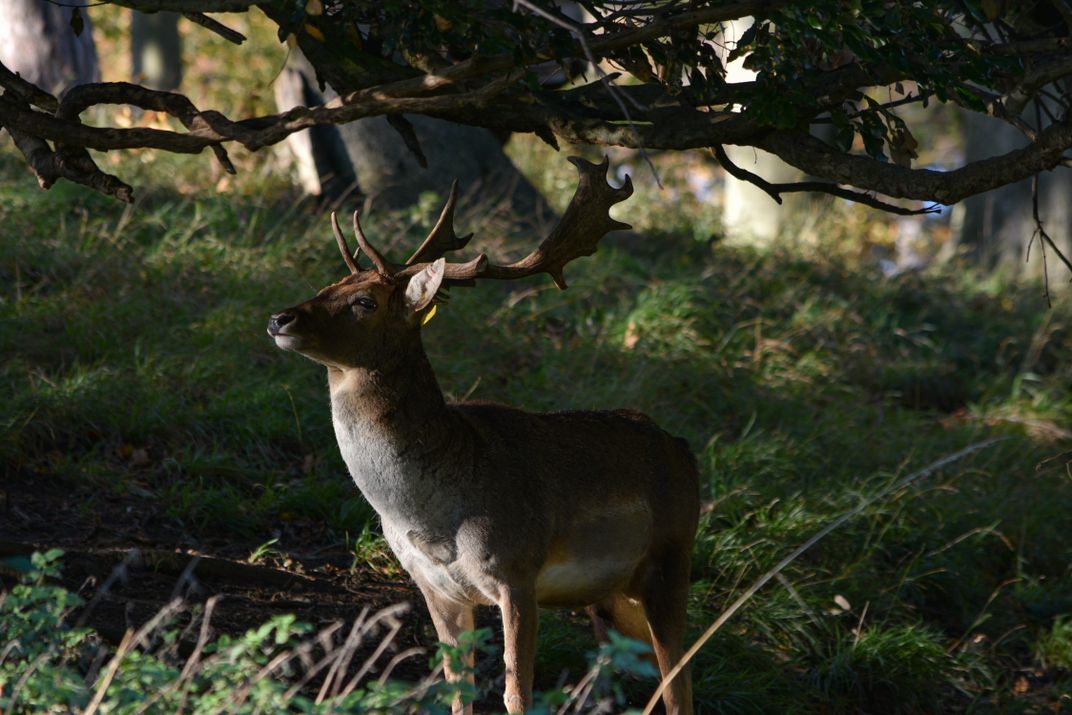 This photo shows how the animals can feel relax even though they have been watched by the humans. I was walking in the park and then I saw this amazing animal with a huge antlers under the shadow of a tree taking the sun light.