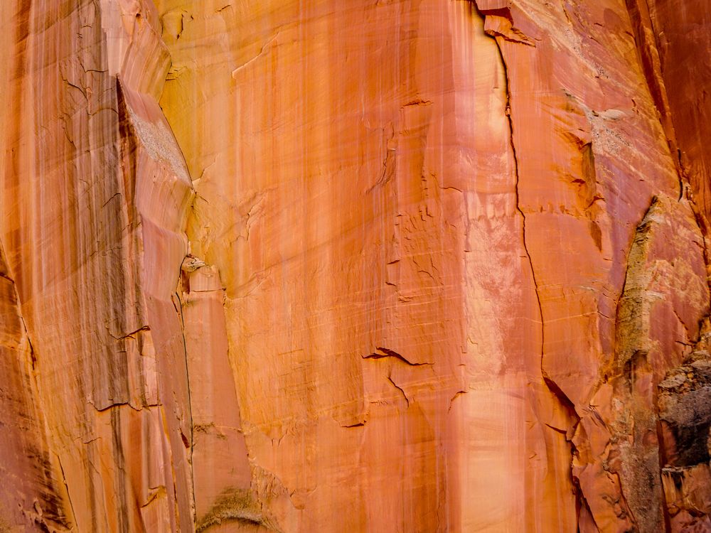 Taken in Capitol Gorge, Capital Reef National Park Going for a hike in Capitol Gorge with the sun's reflection off the opposite wall of the canyon. The natural feature known as Tapestry Wall.