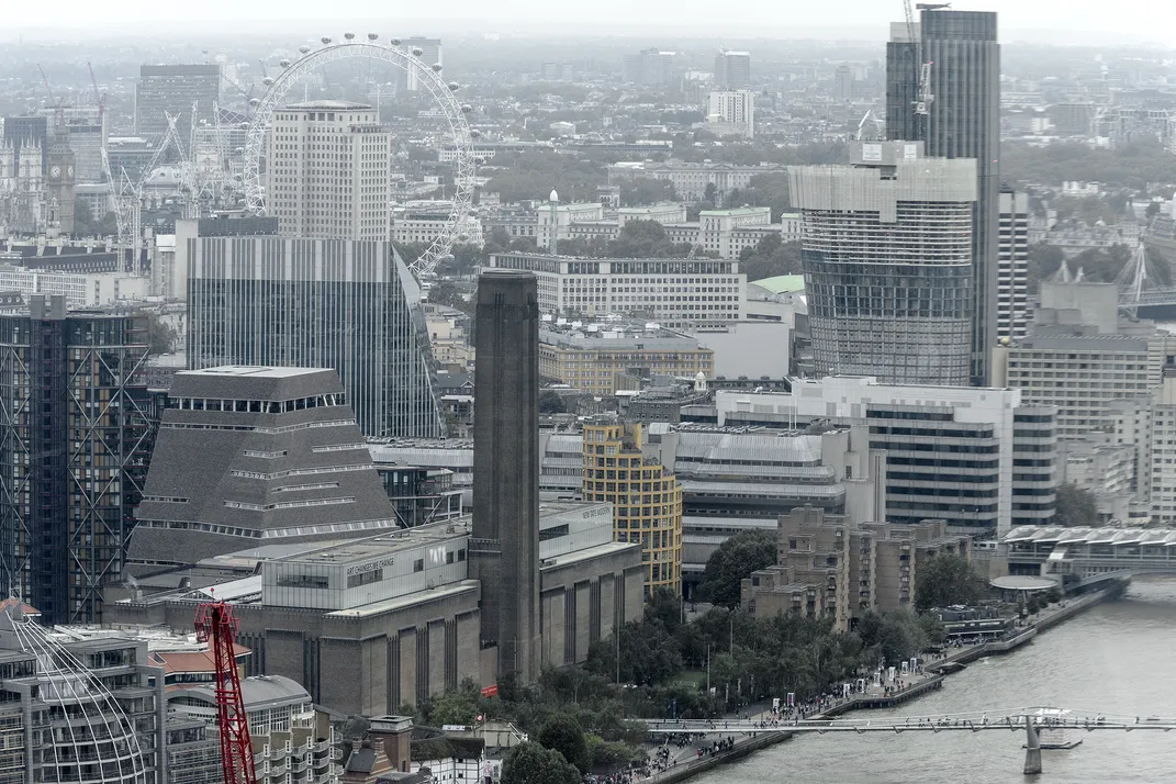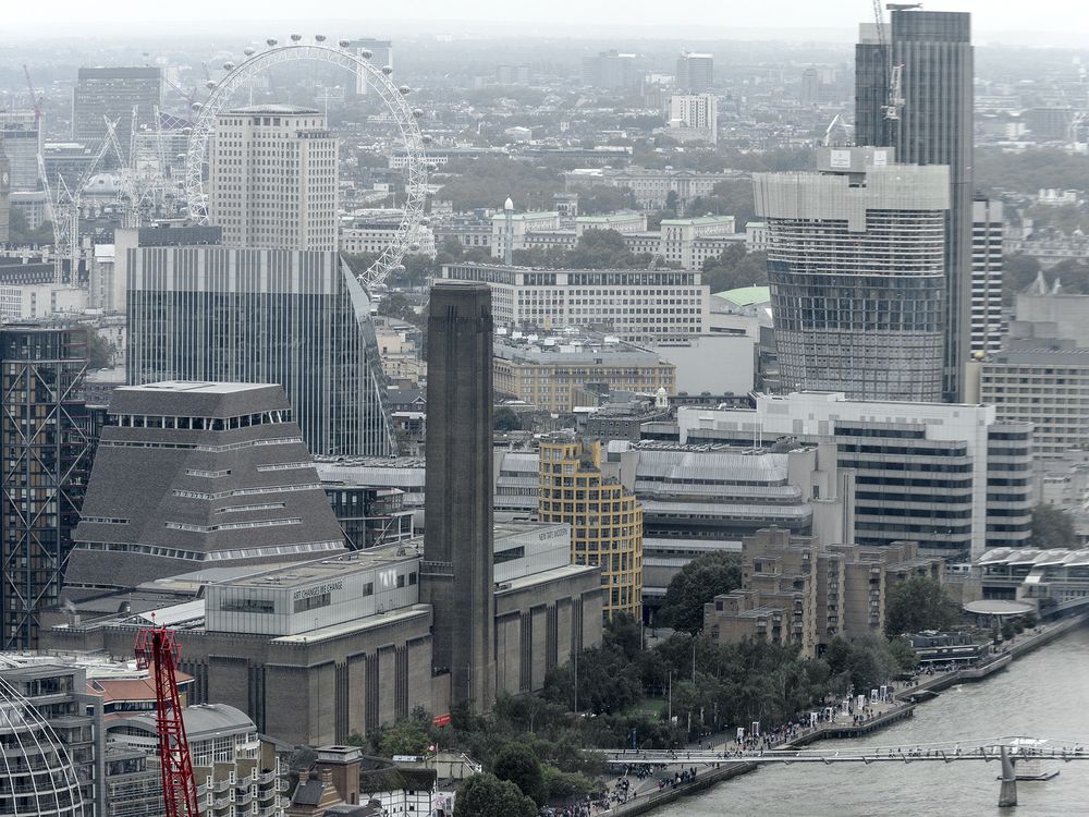 From the top of the Shard, the tallest building in London, it is possible to see right across the city, here to Tate Modern and the London Eye.