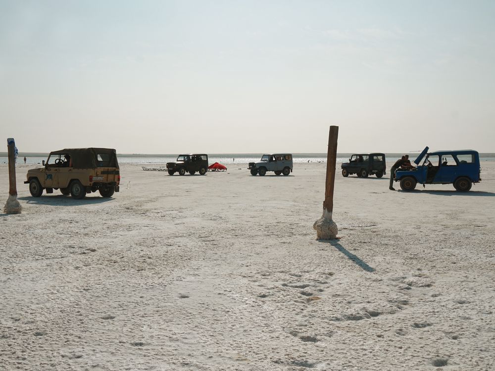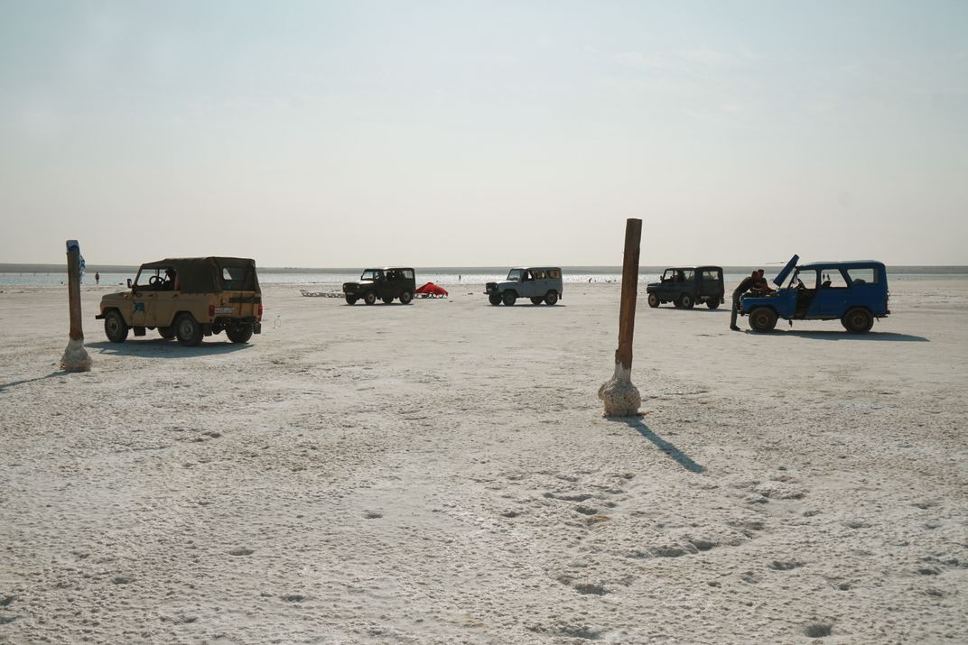 An unusual taxi on Lake Baskunchak takes tourists to any place.