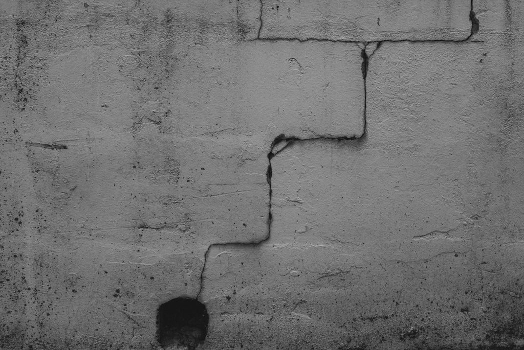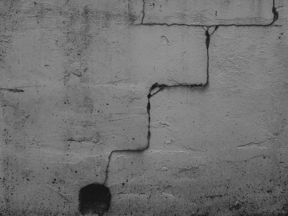A crack in a wall moves in straight lines until it reaches a drain pipe.