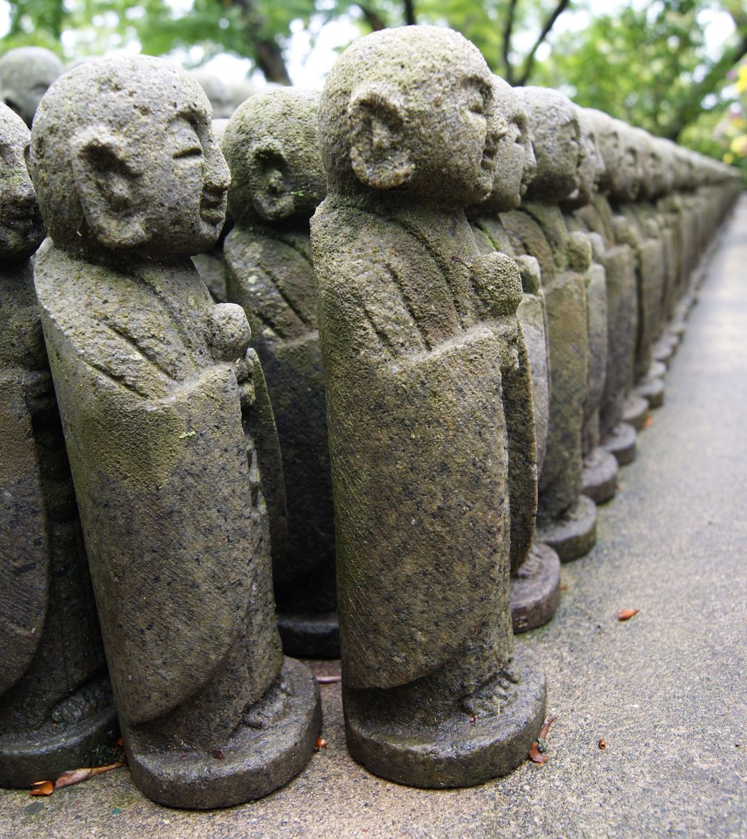 Temple in Kamakura, Japan, with statues made to remember unborn babies.