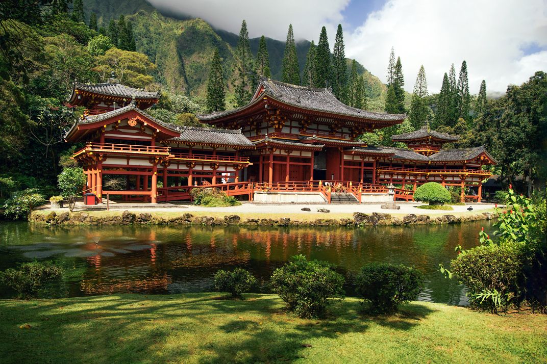 This photo captures the striking beauty of a Japanese Buddhist temple built in 1968. The temple was constructed to honor the centennial of Japanese migration to Hawaii, marking 100 years since the first migrants arrived on the islands. Its bold architectural design and vivid colors stand as a symbol of resilience, faith, and cultural heritage. Beyond its spiritual significance, the temple reflects the enduring bond between Hawaii and Japan, representing generations of shared history, traditions, and community. The vibrant hues and intricate details invite visitors to reflect on the journey of the Japanese people and the lasting impact they have had on Hawaii’s cultural landscape.