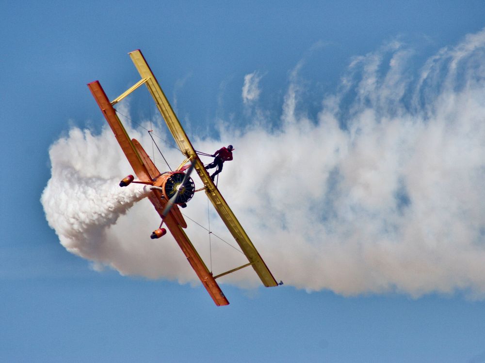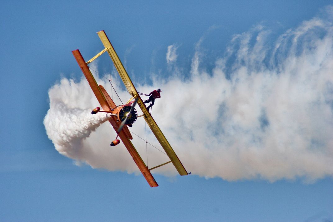 Teresa Stokes, aviation artist, gets some fresh air aboard Gene Soucy's "Showcat", a modified Grumman AgCat, during the Reno National Championship Air Races. Canon EOS 20D
