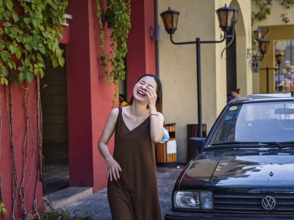 When the city people came to the beautiful Qiandao Lake, the scenes of scenery made the girl completely happy.