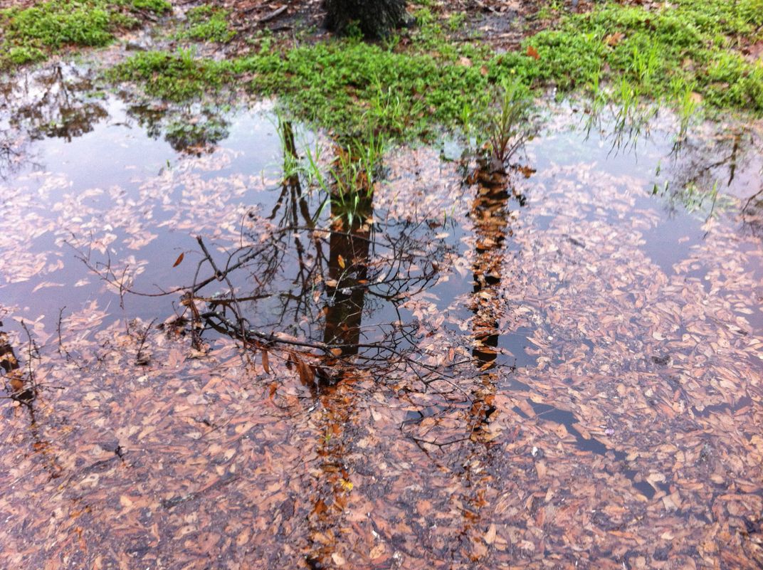 The after-effects of the drought in Texas. This area had never flooded before and after the drought the land began to flood because many of the plants that had taken in the water had died in the droug