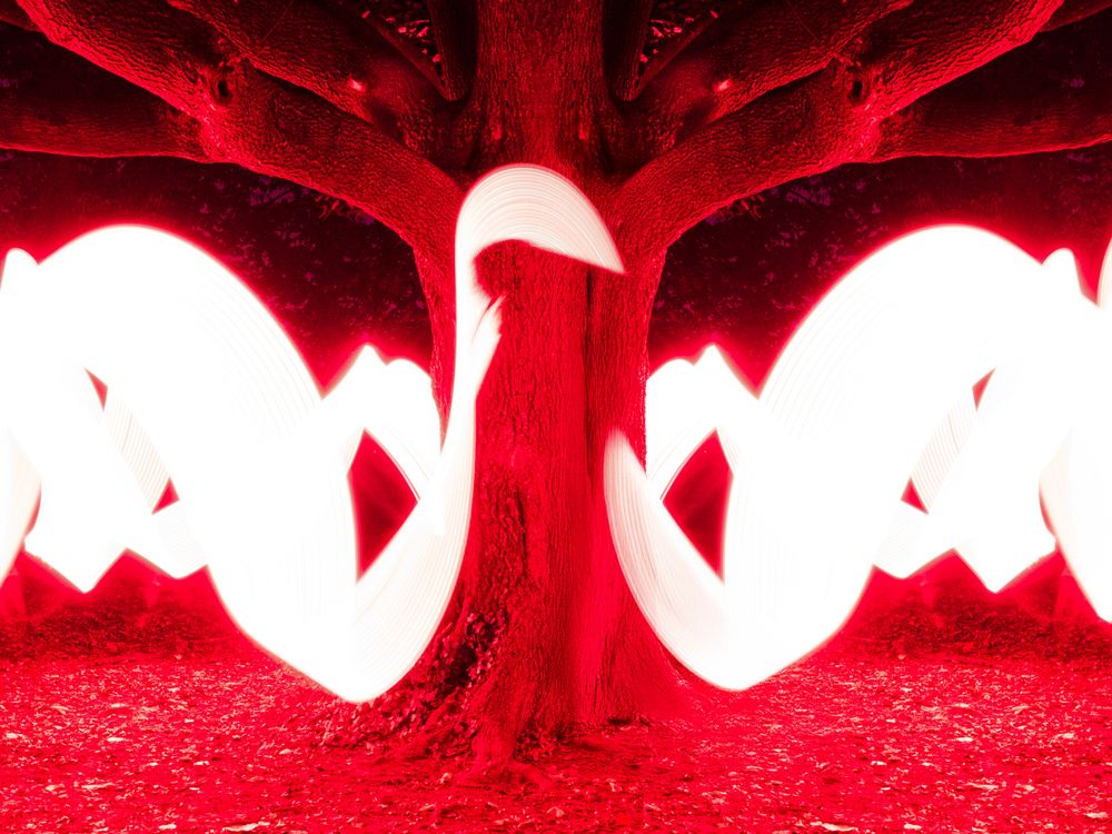 “The Ancestral Light” explores the connection between ancient nature and the energy we carry within us. The central tree stands like an old guardian, its massive trunk rooted in generations of silent memory. Surrounding it, waves of bright white light pulse like living spirits - a visual echo of all those who once walked these woods. The intense red glow transforms the scene into something almost ritualistic, suggesting that the forest holds not just life, but history, presence, and an unbroken flow of ancestral energy.