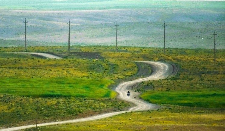 In fact, my goal in taking this photo was to create a minimal image of a motorcyclist traveling on a beautiful, dirt road, which I thought was a very beautiful image that I captured at such a great distance and at the heights of a mountain trip.