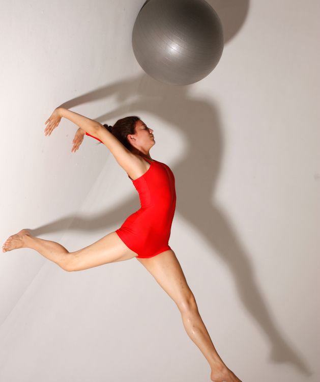 The beauty of gymnastics altered by an exercise ball in full motion