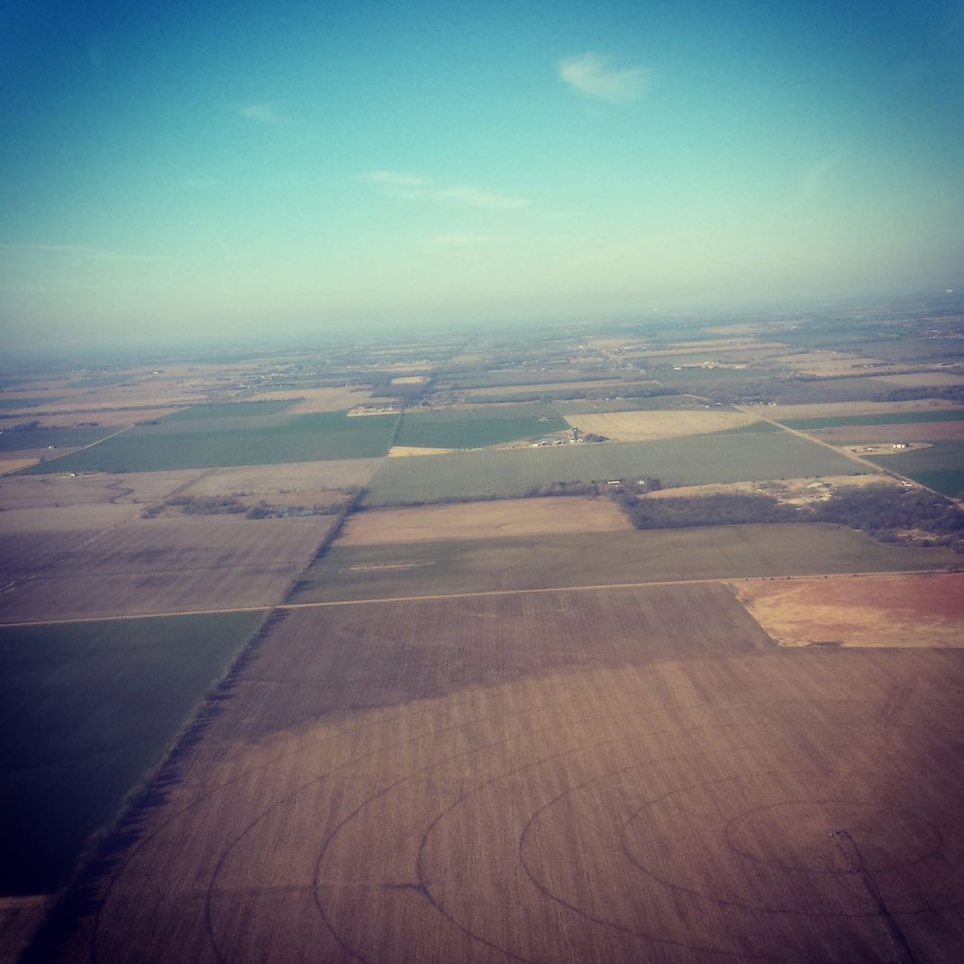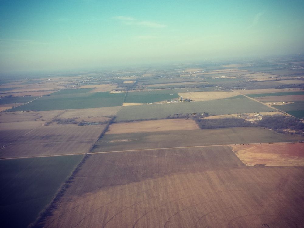 Aerial view of farm fields of Kansas